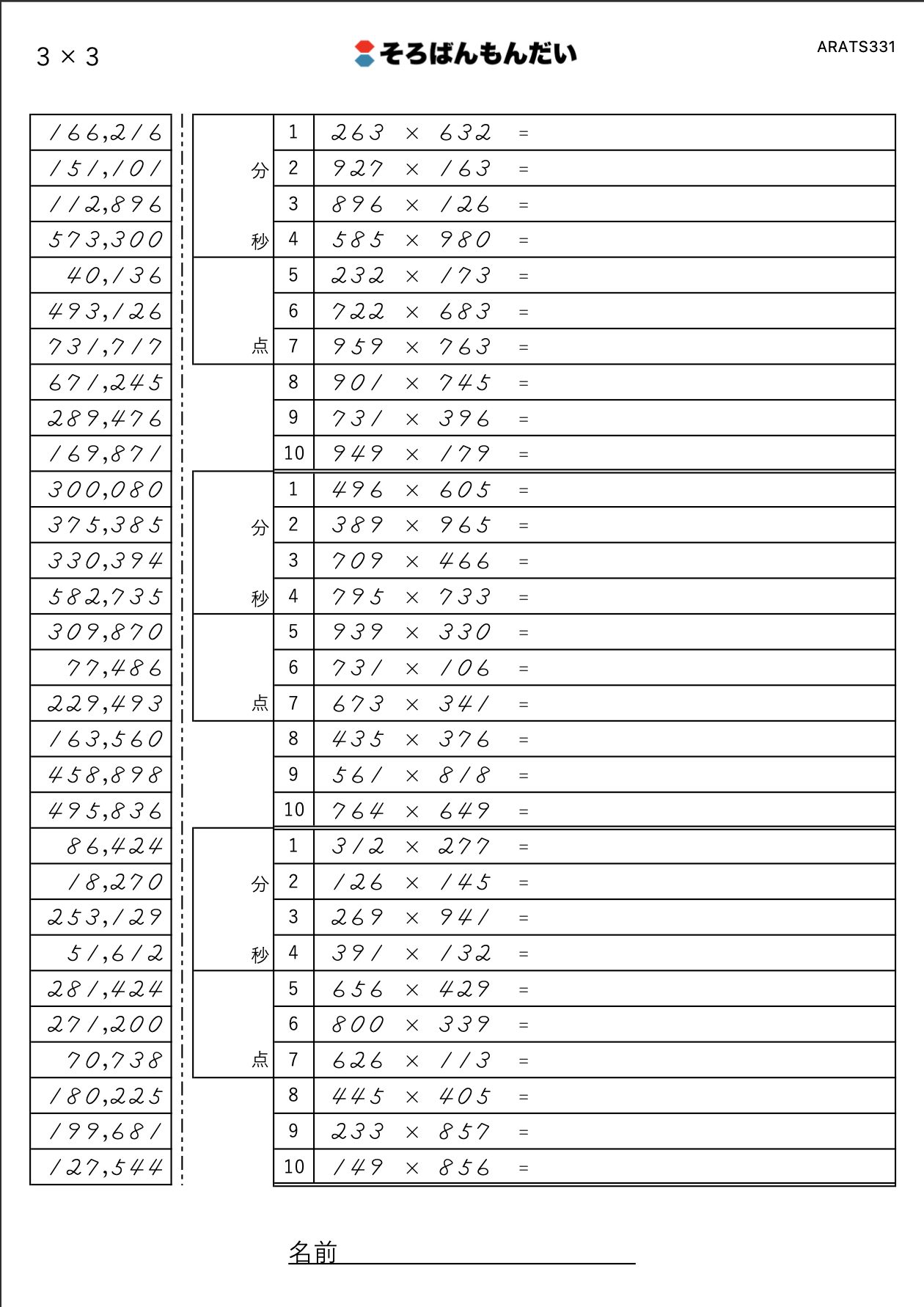 現在、かけ算の桁別ランダム問題を載せております。問題を詳しく見たい方、印刷したい方は、「詳しく見る」からページを飛んでください。